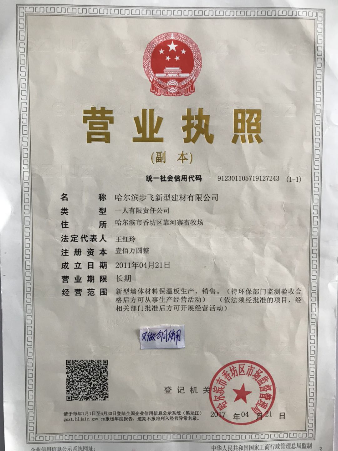 公司地址:哈爾濱市香坊區(qū)幸福鄉(xiāng)靠河寨畜牧場(chǎng)    商店地址:哈爾濱市道外區(qū)禧龍五金市場(chǎng)東7街區(qū)c棟1號(hào)